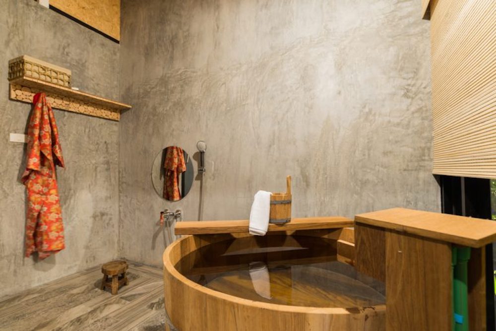 Đặc trưng trong thiết kế phòng tắm kiểu Nhật thường sử dụng bồn tắm gỗ để ngâm và thư giãn. Chất liệu gỗ tạo nên cảm giác thân thiện với môi trường như đang tắm ở spa mang đến cho bạn một trải nghiệm thú vị.