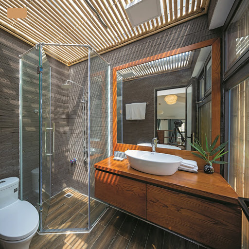 Mẫu nhà tắm là sự kết hợp hoàn hảo giữa phong cách Nhật Bản truyền thống và nét hiện đại. Sử dụng tông màu gỗ trầm ấm kết hợp với gạch lát màu trắng sang trọng cùng không gian hài hòa giúp bạn có những phút giây khi thoải mái sau một ngày làm việc mệt mỏi